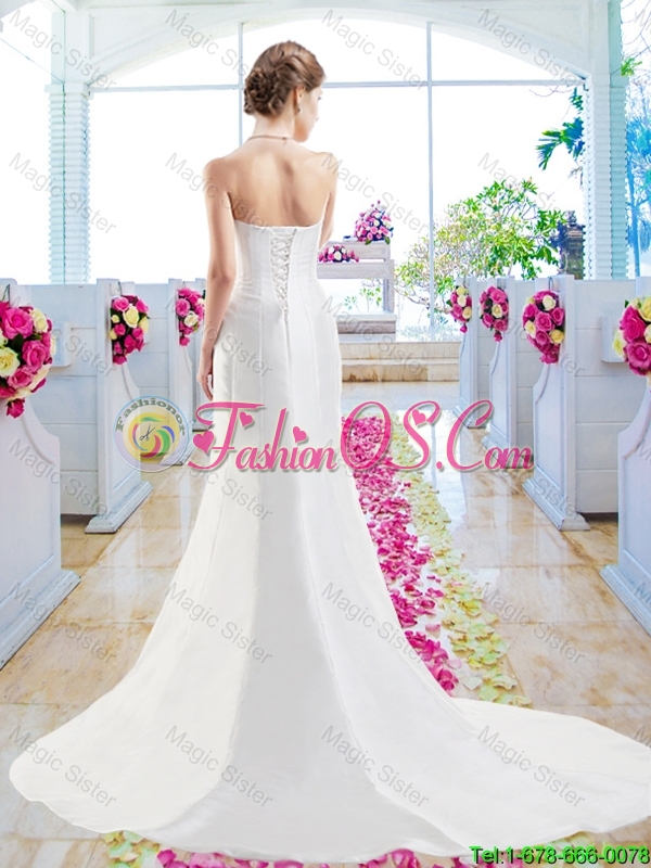 Home >  Wedding Dresses >  Romantic Wedding Dresses > Discount Column Bridal Gowns with Belt and Appliques