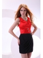 Home >  Prom Dresses >  Fashionable Prom Dresses > Discount Column V-neck Column Black and Red Prom Dress with Ruching