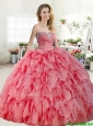 Home >  Quinceanera Dresses >  Sweet 16 Dresses > Discount Coral Red Quinceanera Dress with Beading and Ruffles