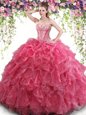 Home >  Quinceanera Dresses >  Popular Quinceanera Dresses > Discount Coral Red Sleeveless Organza Lace Up Ball Gown Prom Dress for Military Ball and Sweet 16 and Quinceanera