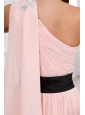 Discount Empire One Shoulder Chiffon Appliques Pink Prom Dress