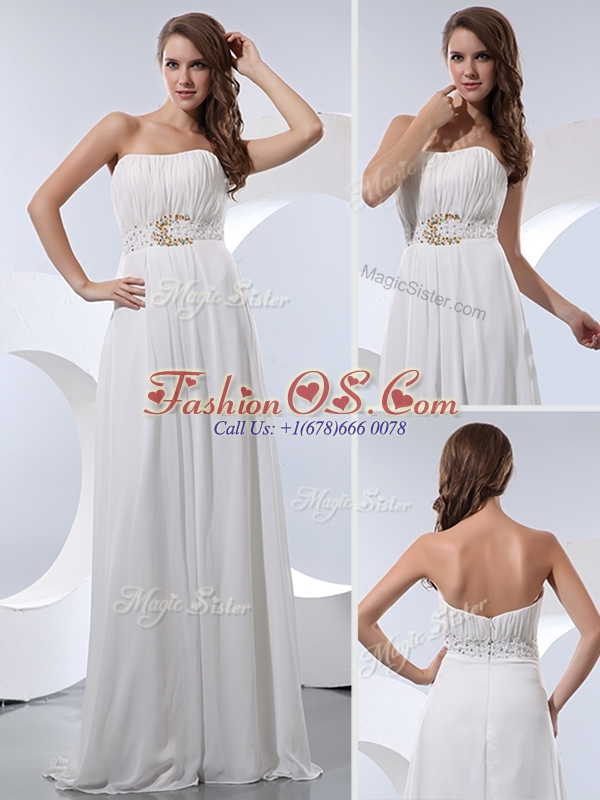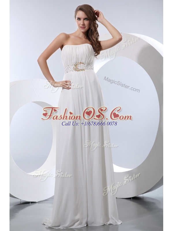 Discount Empire Strapless Beading Celebrity Dresses in White