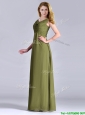 Discount Empire V Neck Chiffon Olive Green Mother of the Bride Dress with Ruching