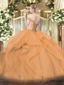 Discount Floor Length Yellow Sweet 16 Dress Tulle Sleeveless Beading and Ruffles