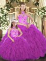 Discount Fuchsia Sleeveless Floor Length Embroidery and Ruffles Lace Up 15 Quinceanera Dress