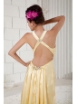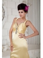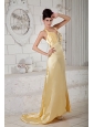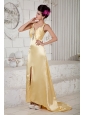 Home >  Prom Dresses >  Elegant Prom Dresses > Discount Gold Empire Prom Dress Straps Beading Brush Train Taffeta