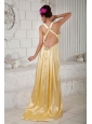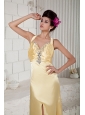 Discount Gold Empire Prom Dress Straps Beading Brush Train Taffeta