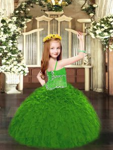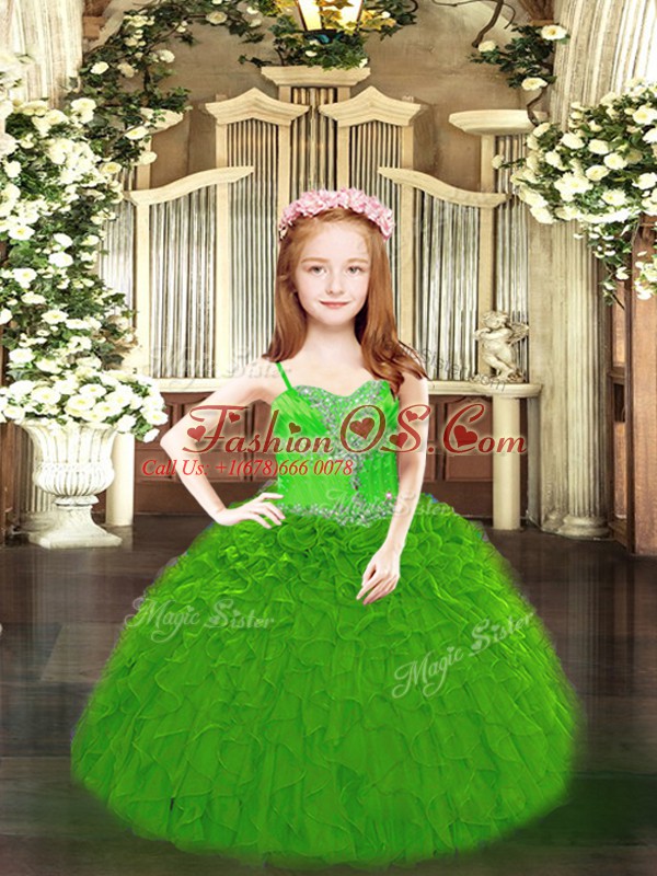 Discount Green Ball Gowns Beading and Ruffles Little Girls Pageant Dress Wholesale Lace Up Organza Sleeveless Floor Length