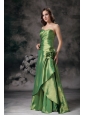 Look flawless at your next formal event in this green gown. This formal dress is strapless with a subdued sweetheart neckline. The bust and bodice are structured with ruching draped for a regal look. A large tonal flower sits at one side of the gown. The skirt is floor length with a soft flare. This is a delicate look for any time of year.