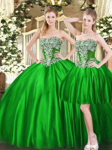 Discount Green Three Pieces Tulle Sweetheart Sleeveless Beading Floor Length Lace Up 15 Quinceanera Dress