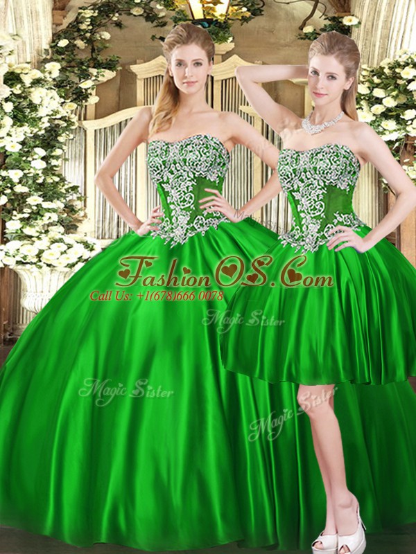 Home >  Quinceanera Dresses >  Detachable Quinceanera Skirts > Discount Green Three Pieces Tulle Sweetheart Sleeveless Beading Floor Length Lace Up 15 Quinceanera Dress