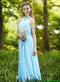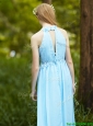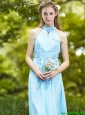 Discount Halter Top Light Blue Prom Dress with Appliques