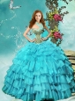 Discount Halter Top Teal Quinceanera Dress with Ruffled Layers and Beading
