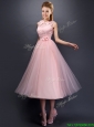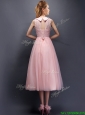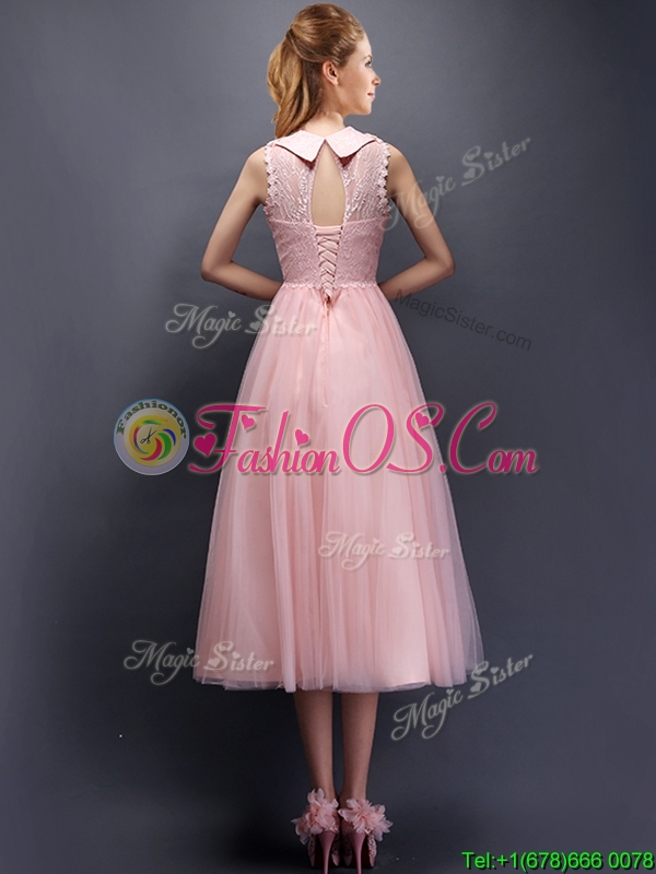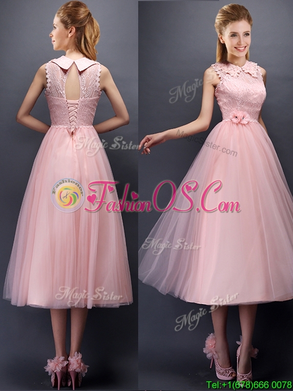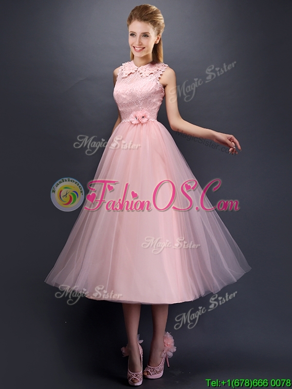 Home >  Special Occasion Dresses >  Cheap Dama Dresses > Discount Hand Made Flowers and Laced High Neck Bridesmaid Dress in Baby Pink