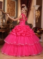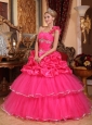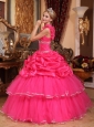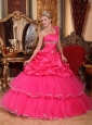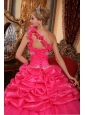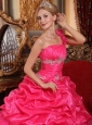 Home >  Quinceanera Dresses >  Perfect Quinceanera Dresses > Discount Hot Pink Quinceanera Dress One Shoulder Organza Beading and Pick-ups Ball Gown