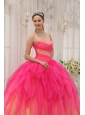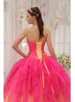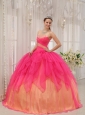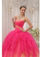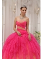 Discount Hot Pink Quinceanera Dress Strapless Organza Beading Ball Gown