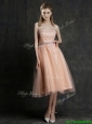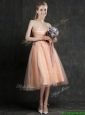 Discount Hot Sale Strapless Peach Prom Dresses  with Sashes and Lace