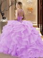 Discount Lavender Ball Gowns Halter Top Sleeveless Organza Sweep Train Lace Up Beading and Ruffles Vestidos de Quinceanera