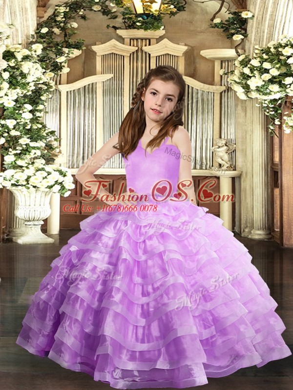 Discount Lavender Lace Up Straps Ruffled Layers Little Girls Pageant Dress Wholesale Organza Sleeveless