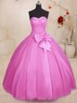 Discount Lilac Ball Gowns Tulle Sweetheart Sleeveless Beading and Bowknot Floor Length Lace Up Quinceanera Dress