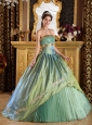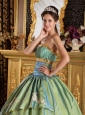 Discount Lime Green Quinceanera Dress Strapless Taffeta and Organza Appliques Ball Gown
