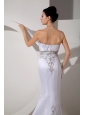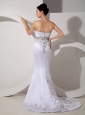 Discount Mermaid Strapless Wedding Dress Brush Train Satin Embroidery and Ruch