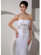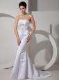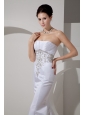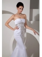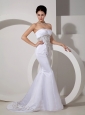 Home >  Wedding Dresses >  Elegant Wedding Dresses > Discount Mermaid Strapless Wedding Dress Brush Train Satin Embroidery and Ruch