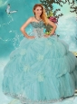 Home >  Quinceanera Dresses >  Unique Quinceanera Dresses > Discount Mint Sweetheart Quinceanera Gown with Beading and Handcrafted Flowers