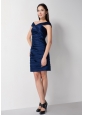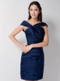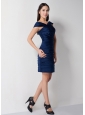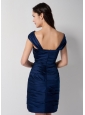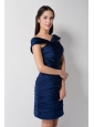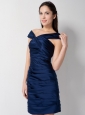 Home >  Bridesmaid Dresses >  Cheap Bridesmaid Dresses > Discount Navy Blue Column Asymmetrical Ruch Bridesmaid Dress Mini-length Taffeta