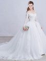 Home >  Wedding Dresses >  Fashionable Wedding Dresses > Discount Off The Shoulder Long Sleeves Tulle Wedding Gown Lace and Appliques Brush Train Zipper