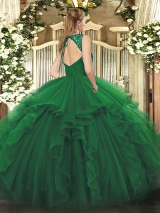 Discount Olive Green 15th Birthday Dress Sweet 16 and Quinceanera with Ruffles V-neck Sleeveless Zipper