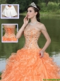 Discount Orange Quinceanera Dresses with Beading and Ruffles Layered