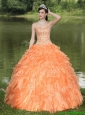 Home >  Quinceanera Dresses >  Discount Quinceanera Dresses > Discount Orange Quinceanera Dresses with Beading and Ruffles Layered