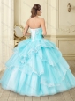 Discount Organza Baby Pink Quinceanera Dress with Appliques and Ruffles