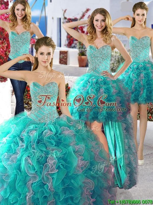 Discount Organza Detachable Quinceanera Dresses with Beading and Ruffles