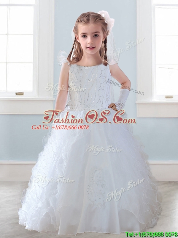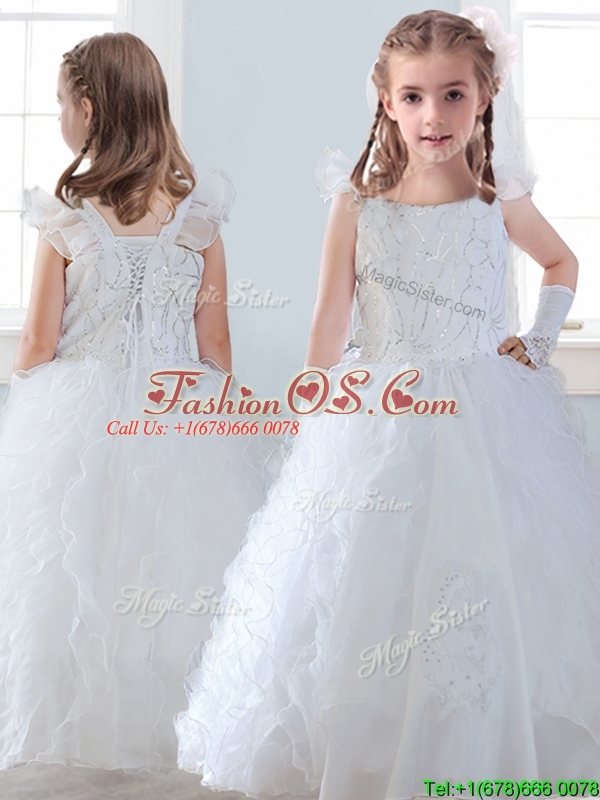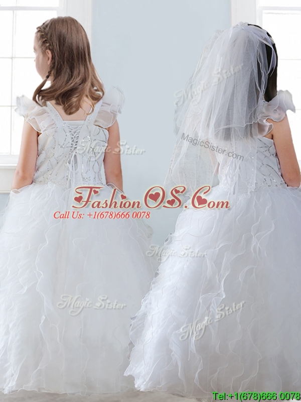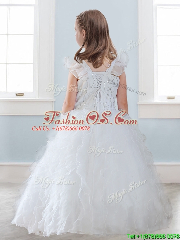 Discount Organza Straps Little Girl Pageant Dress with Sequins and Ruffles