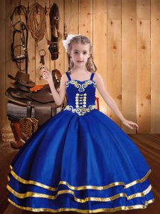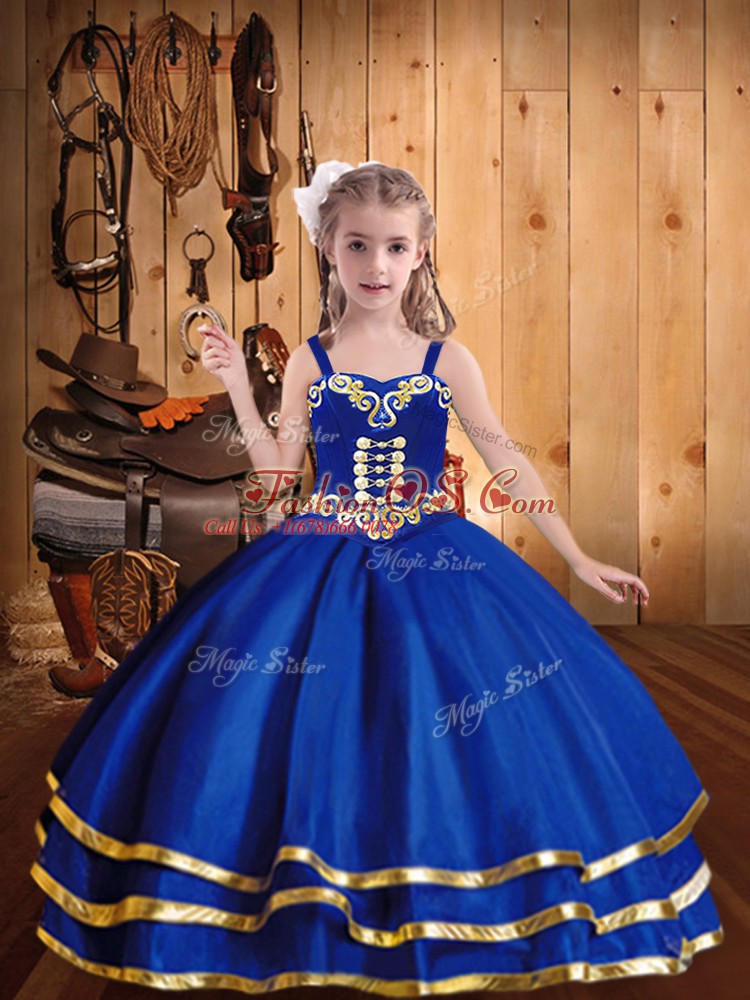 Home >  Special Occasion Dresses >  2018 Little Girl Pageant Dresses > Discount Organza Straps Sleeveless Lace Up Embroidery and Ruffled Layers Little Girls Pageant Dress Wholesale in Royal Blue