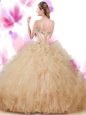 Home >  Quinceanera Dresses >  Pretty Quinceanera Dresses > Discount Peach Ball Gowns Beading and Ruffles Sweet 16 Quinceanera Dress Lace Up Tulle Sleeveless Floor Length