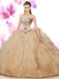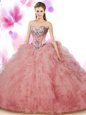 Discount Peach Ball Gowns Beading and Ruffles Sweet 16 Quinceanera Dress Lace Up Tulle Sleeveless Floor Length
