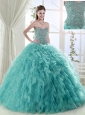 Discount Puffy Skirt Tulle Mint Quinceanera Dress with Beading and Ruffles