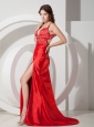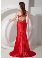 Home >  Prom Dresses >  Sexy Prom Dresses > Discount Red Column / Sheath Straps Beading Prom Dress Brush/Sweep Elastic Woven Satin