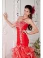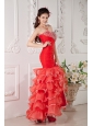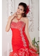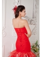 Home >  Prom Dresses >  Unique Prom Dresses > Discount Red Mermaid Prom / Evening Dress Sweetheart Organza Beading Ankle-length