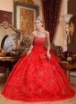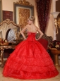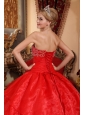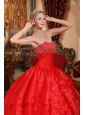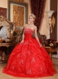 Home >  Quinceanera Dresses >  Discount Quinceanera Dresses > Discount Red Quinceanera Dress Strapless Organza Appliques Ball Gown