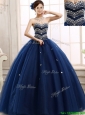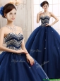 Discount Rhinestoned Really Puffy Quinceanera Dress in Navy Blue