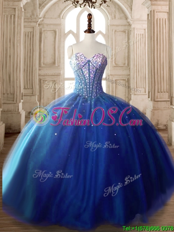Discount Royal Blue Tulle Sweet 16 Dress with Beading
