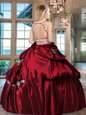Discount Scoop Backless Floor Length Wine Red 15th Birthday Dress Taffeta Sleeveless Beading and Appliques and Pick Ups
