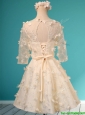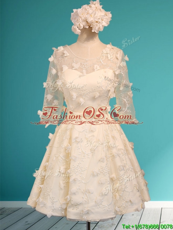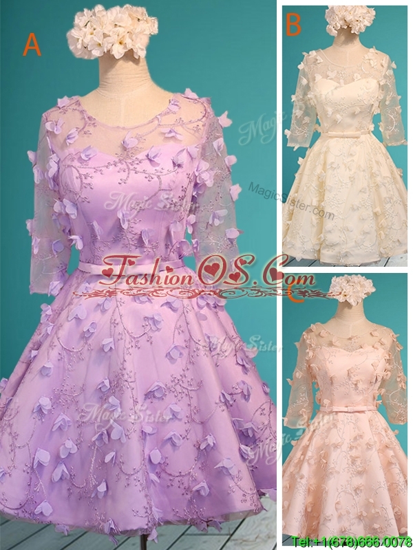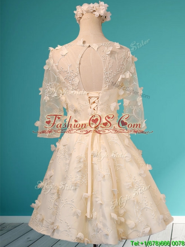 Discount Scoop Half Sleeves Champagne Bridesmaid Dress with Appliques and Belt
