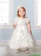 Discount Scoop Short Sleeves Flower Girl Dress with Embroidery and Lace