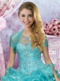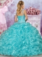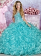 Discount See Through Scoop Beaded and Ruffled Quinceanera Gown in Aqua Blue