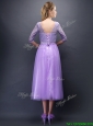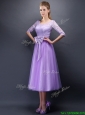 Discount See Through Scoop Half Sleeves Prom Dresses with Bowknot